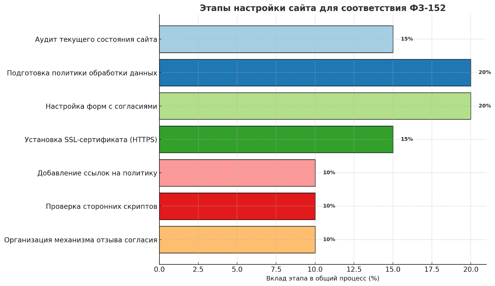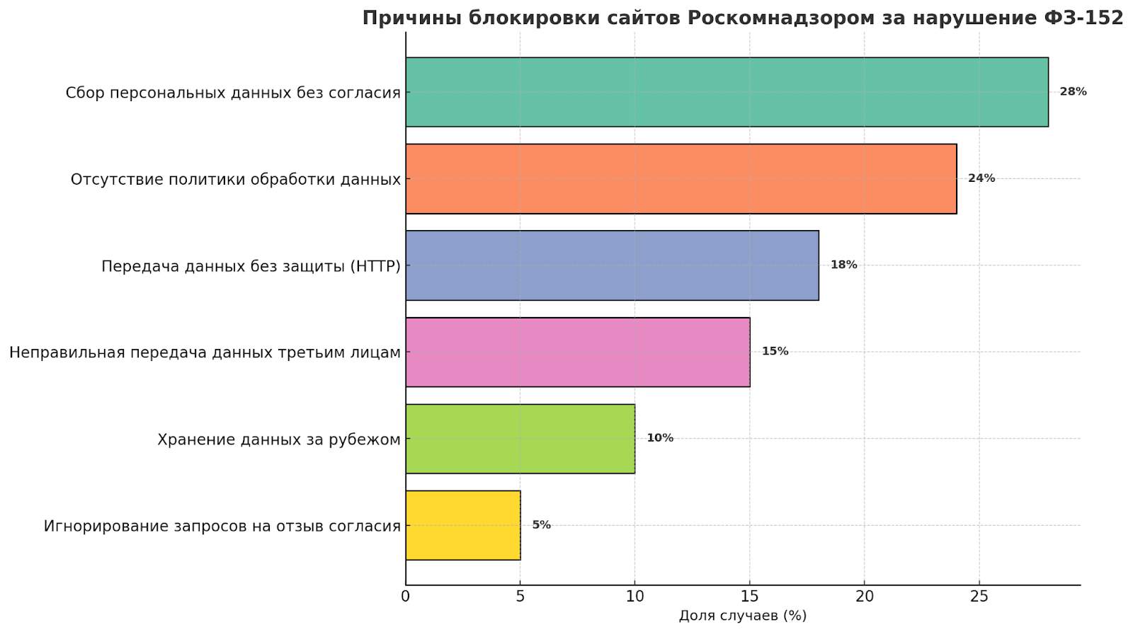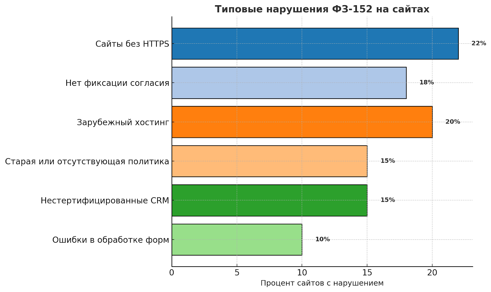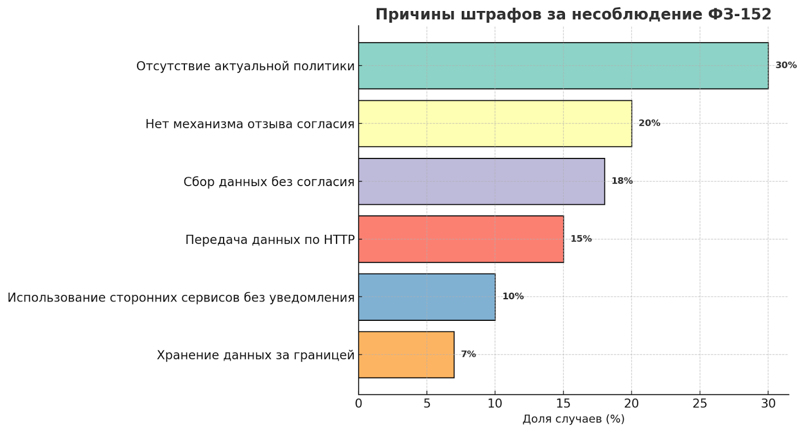 С каждым годом Роскомнадзор усиливает контроль над соблюдением закона о персональных данных. Согласно последним данным, количество проверок сайтов на соответствие ФЗ-152 в России выросло более чем на 30% в сравнении с предыдущими годами. Учитывая, что штрафы за нарушения достигают 75 000 рублей за каждый эпизод, а повторные нарушения могут привести к блокировке сайта, настройка сайта под ФЗ-152 — не формальность, а обязательная часть защиты бизнеса.