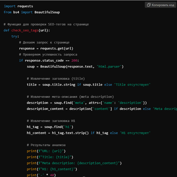 • Динамические сайты: С использованием Selenium можно проверять даже те сайты, которые загружают контент через JavaScript, что делает аудит более точным.