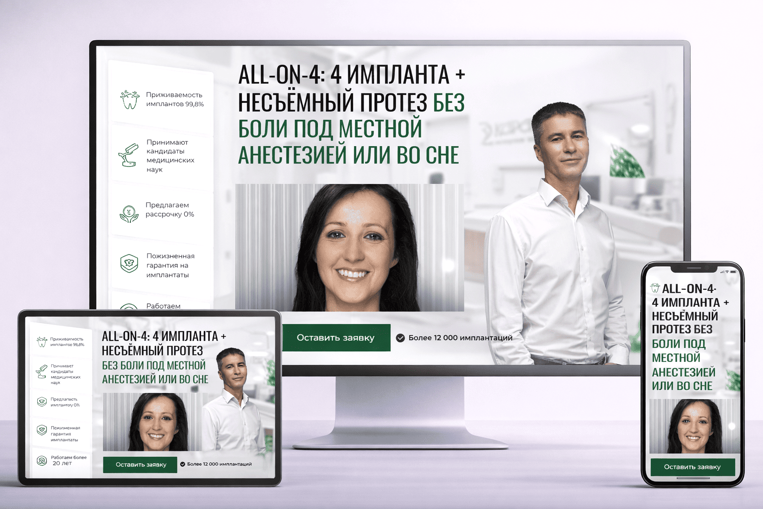 Далее дизайн переводит эмоциональное доверие в рациональное согласие. Выверенная типографика, точечные акценты на формулировках «без боли», «местная анестезия или во сне», числовые показатели опыта и объема операций работают как доказательная система. Эту логику используют качественные сайты медицинских клиник, потому что она сокращает путь сомнений и увеличивает конверсию в заявку в 1,3–1,5 раза. Эксперты digital-консалтинга отмечают: когда визуальный слой усиливает медицинскую аргументацию, ROI рекламных кампаний растет без расширения бюджета — исключительно за счет более уверенного решения пациента.