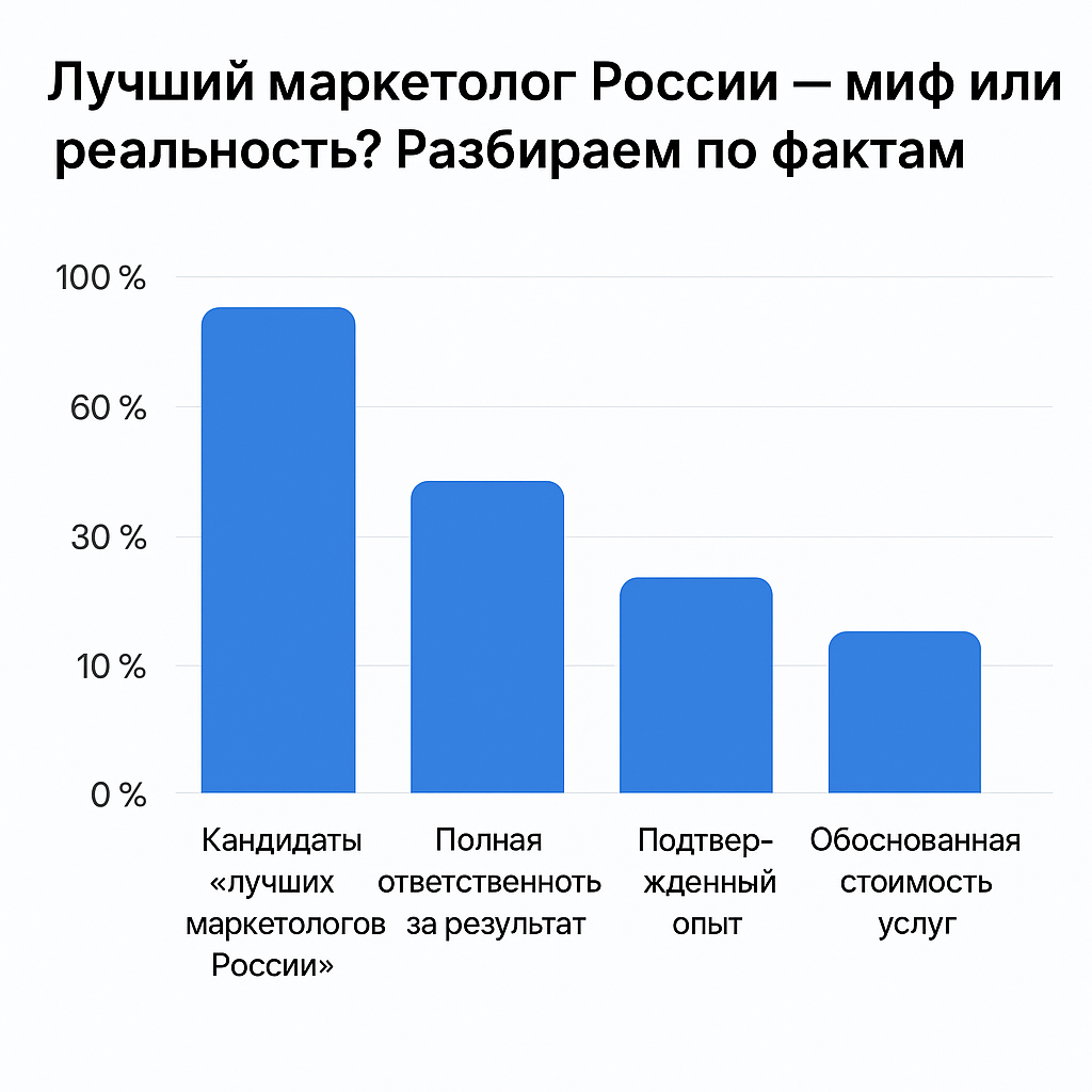 Лучший маркетолог России — звучит как титул из параллельной реальности, где KPI измеряются в подписчиках, рекламный бюджет — в селфи, а стратегия — в рилсах с мотивацией. Бизнесу нужен человек, который умеет не пускать пыль в глаза, а находит способ выжать максимум из трафика без истерик и плясок с блогерами в RUTUBE. В реальности «лучшие маркетологи России» всплывают пачками в ленте Яндекса, но пропадают в момент, когда дело доходит до внятных выводов для бизнесмена.