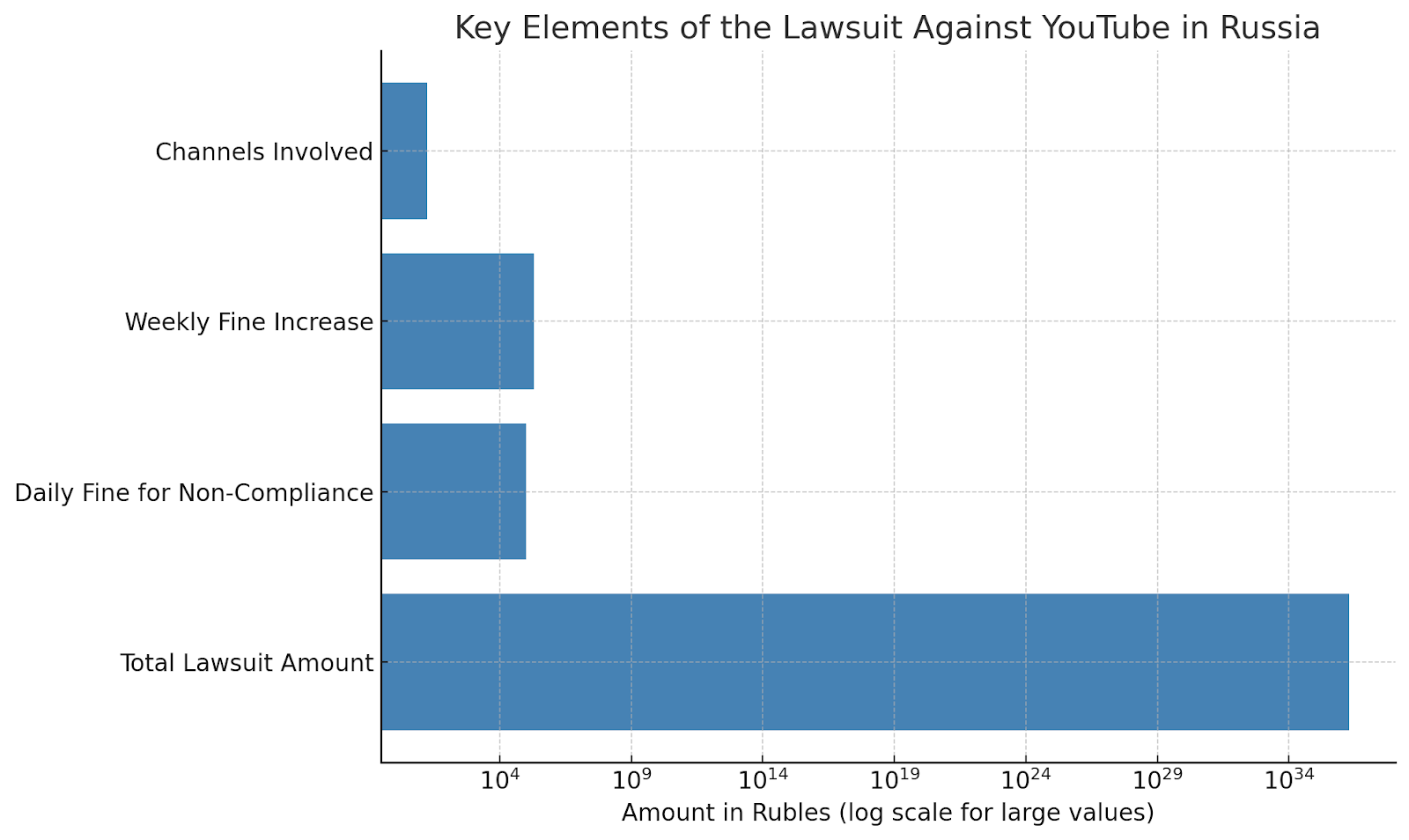 Осень 2024 года стала эпохальной для конфликта YouTube в России. На фоне принудительного замедления видео со стороны провайдеров, обострились российско-американские медийные трения. 29 октября сразу 17 российских международных телеканалов предъявили судебный иск в адрес Google и его дочки YouTube. От американской компании требуют космическую сумму — 2 ундециллиона рублей (это, число с 36 нулями).