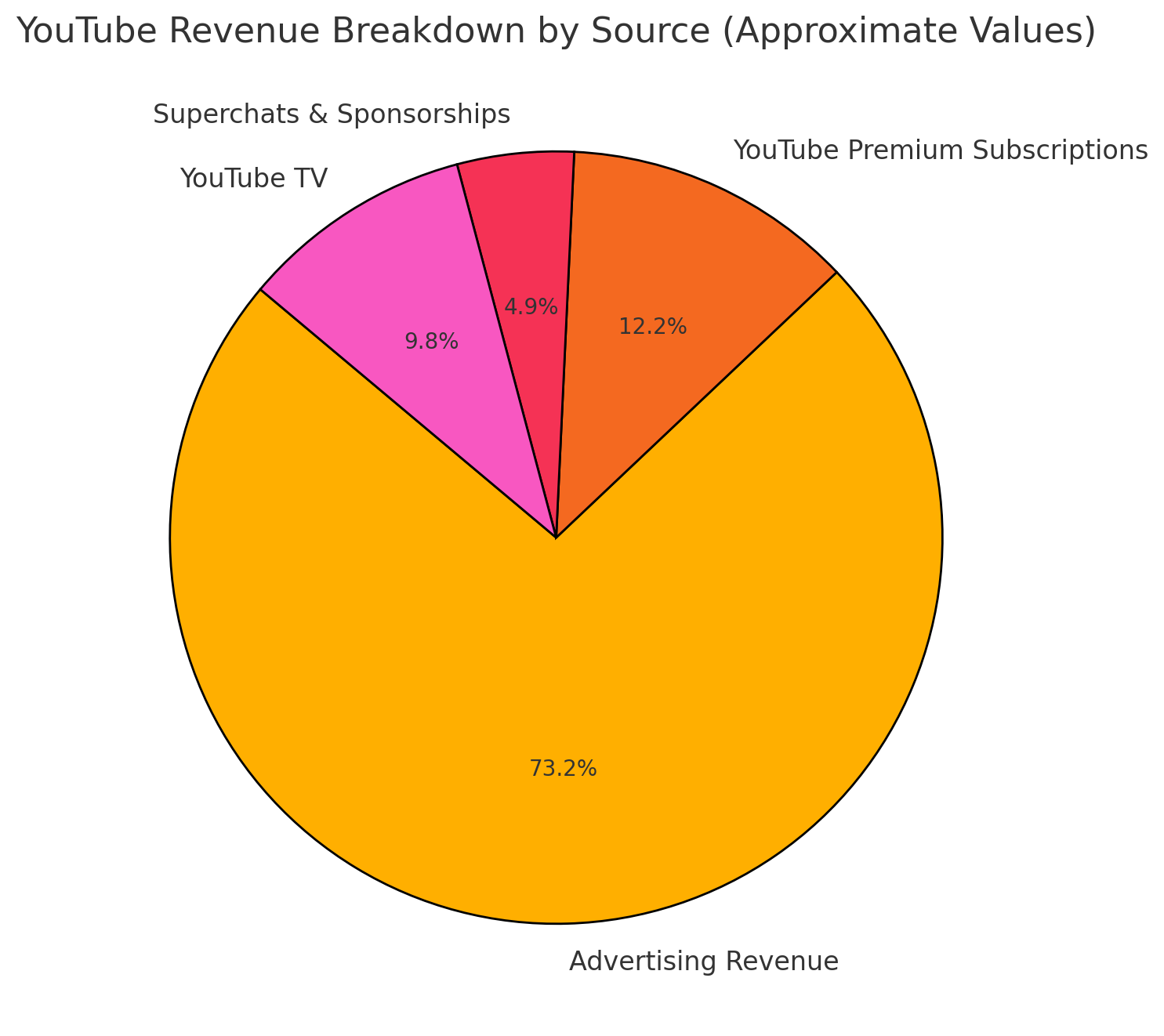 YouTube, как один из самых доходных активов компании Google (принадлежащей структуры компании Alphabet Inc.), приносит колоссальные прибыли, что делает его одним из самых мощных игроков на мировом цифровом рынке. В 2023 году YouTube принес около 30 миллиардов долларов в виде рекламных доходов — почти 11% от общего дохода Alphabet, и это только по сравнительным данным.