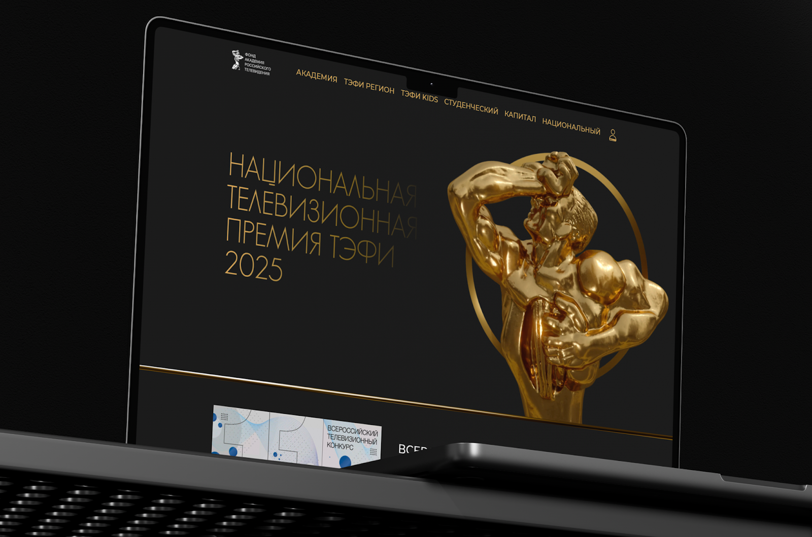 В центре внимания — сияющая золотом статуэтка премии ТЭФИ — символ признания и профессионального триумфа.