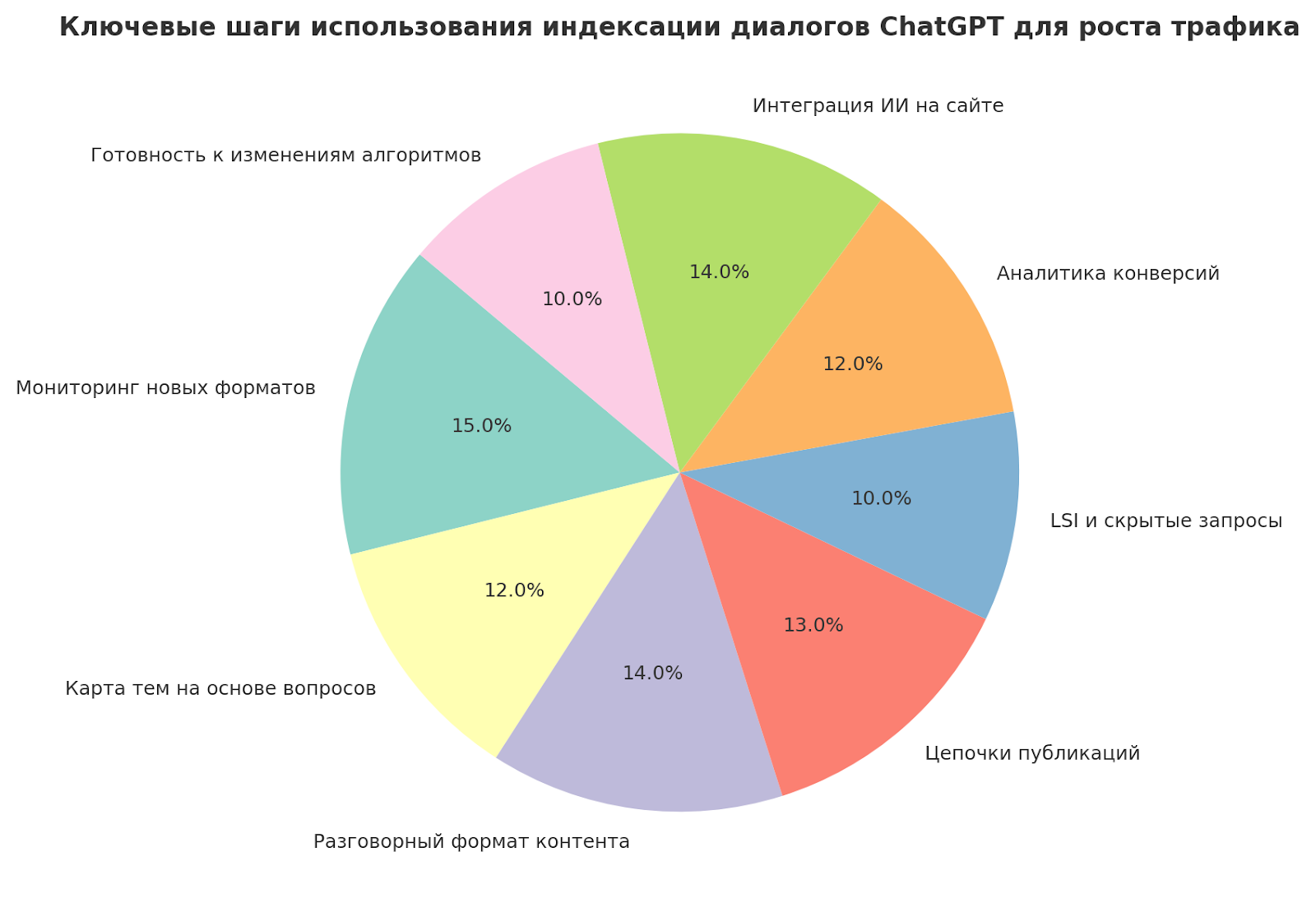 В условиях, когда индексация диалогов ChatGPT становится новым источником конкурентного преимущества, промедление означает потерю доли рынка. Компании, которые первыми адаптируют свои контент-стратегии под этот формат, смогут занять лидирующие позиции в поисковой выдаче, пока конкуренты продолжают работать по устаревшим методикам.