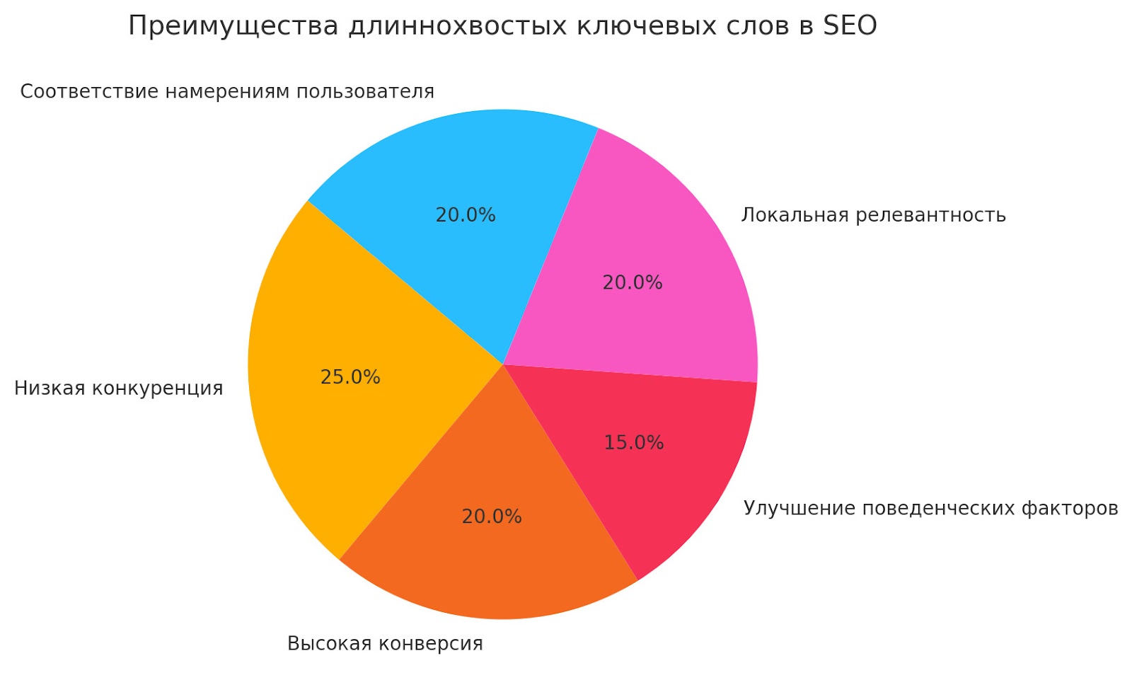 Такие запросы помогают усилить локальную видимость, где конкуренция значительно ниже.