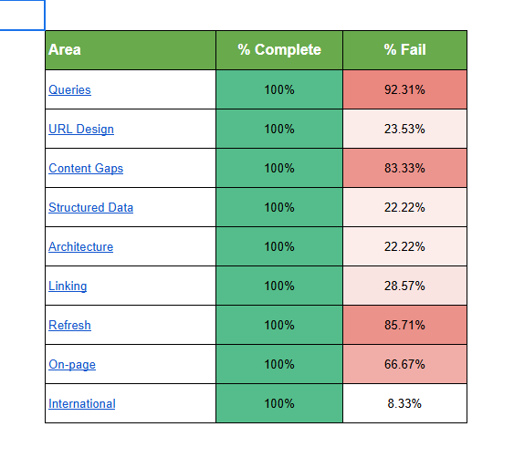 Используя Screaming Frog, экспортируйте каждый URL-адрес с указанием: заголовка/H1, даты последнего обновления, автора, каноничности, количества слов, показателей читабельности, внутренних ссылок и целевого запроса/темы.