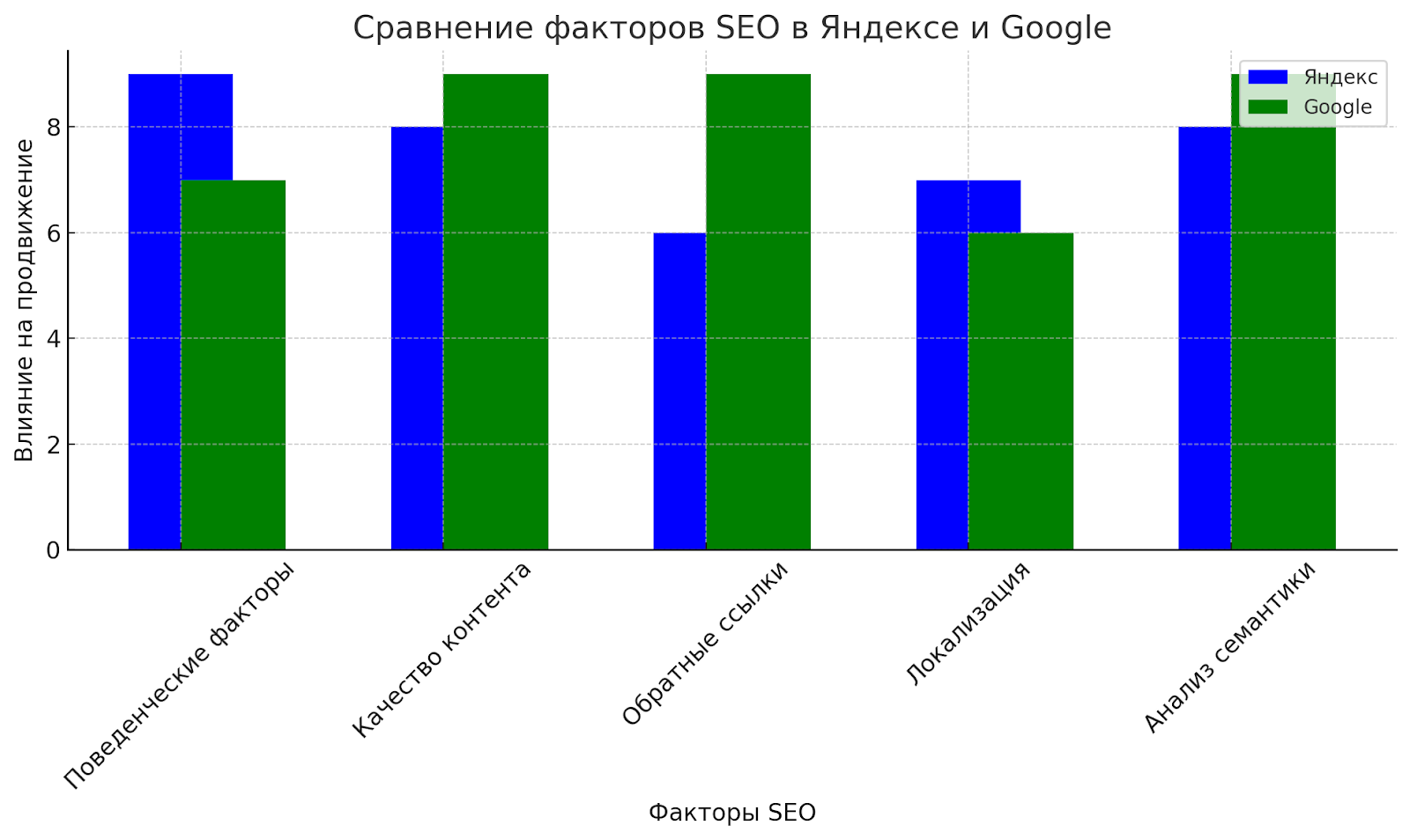В Яндексе поведенческие факторы играют большую роль в определении качества сайта, чем в Google. В то время как Google в основном ориентируется на обратные ссылки и контент, Яндекс активно учитывает, как пользователи взаимодействуют с сайтом: время пребывания на странице, количество переходов, действия на сайте и т. д.