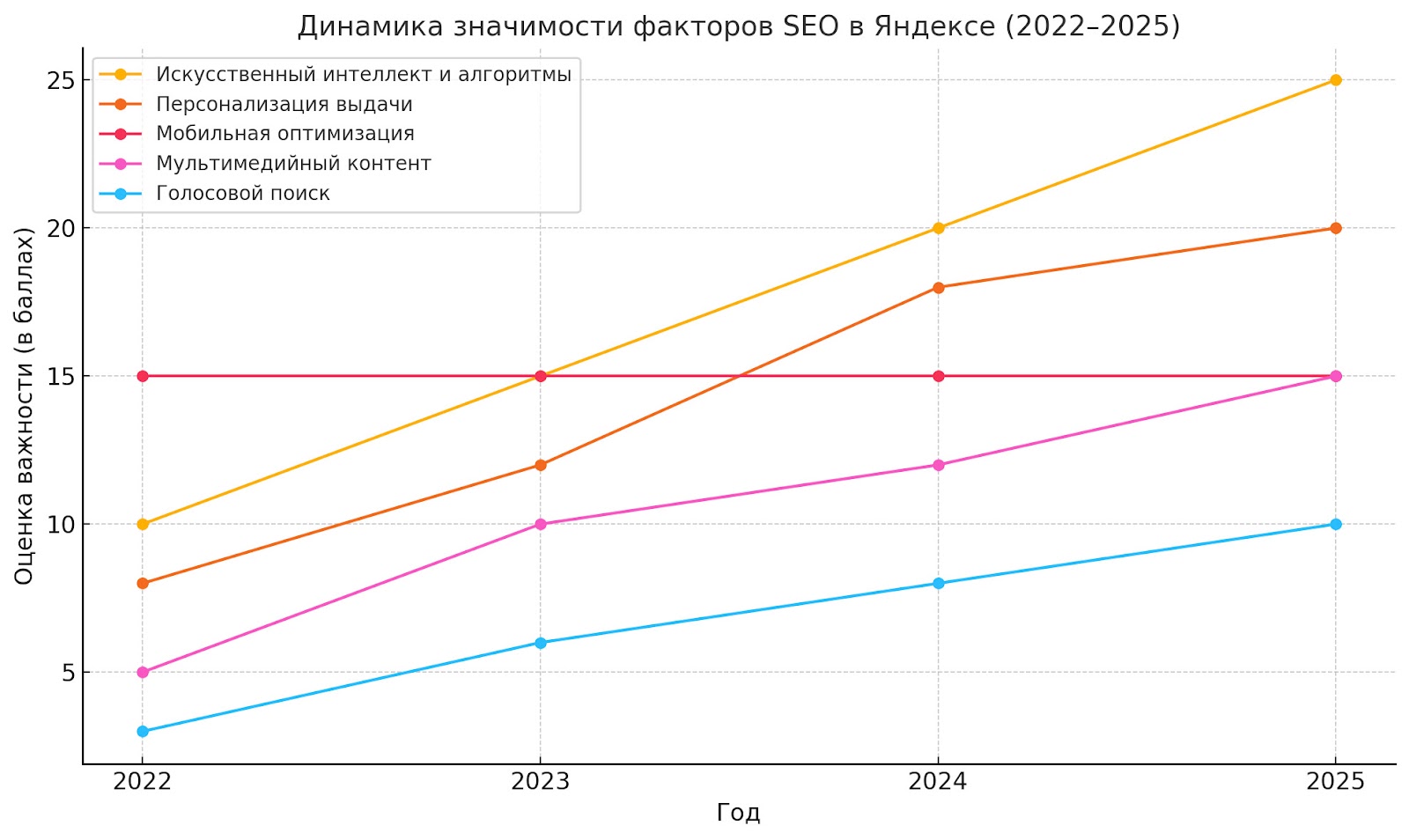 Технологии SEO-продвижения сайтов развиваются под влиянием искусственного интеллекта и новых пользовательских ожиданий. Сегодня я, Владимир Кривов, руководитель интернет-маркетингового агентства РОСТСАЙТ, готов поделиться результатами аналитического исследования о том, какие факторы будут приоритетно влиять на рейтинг сайта в Яндексе и Google в 2025 году.