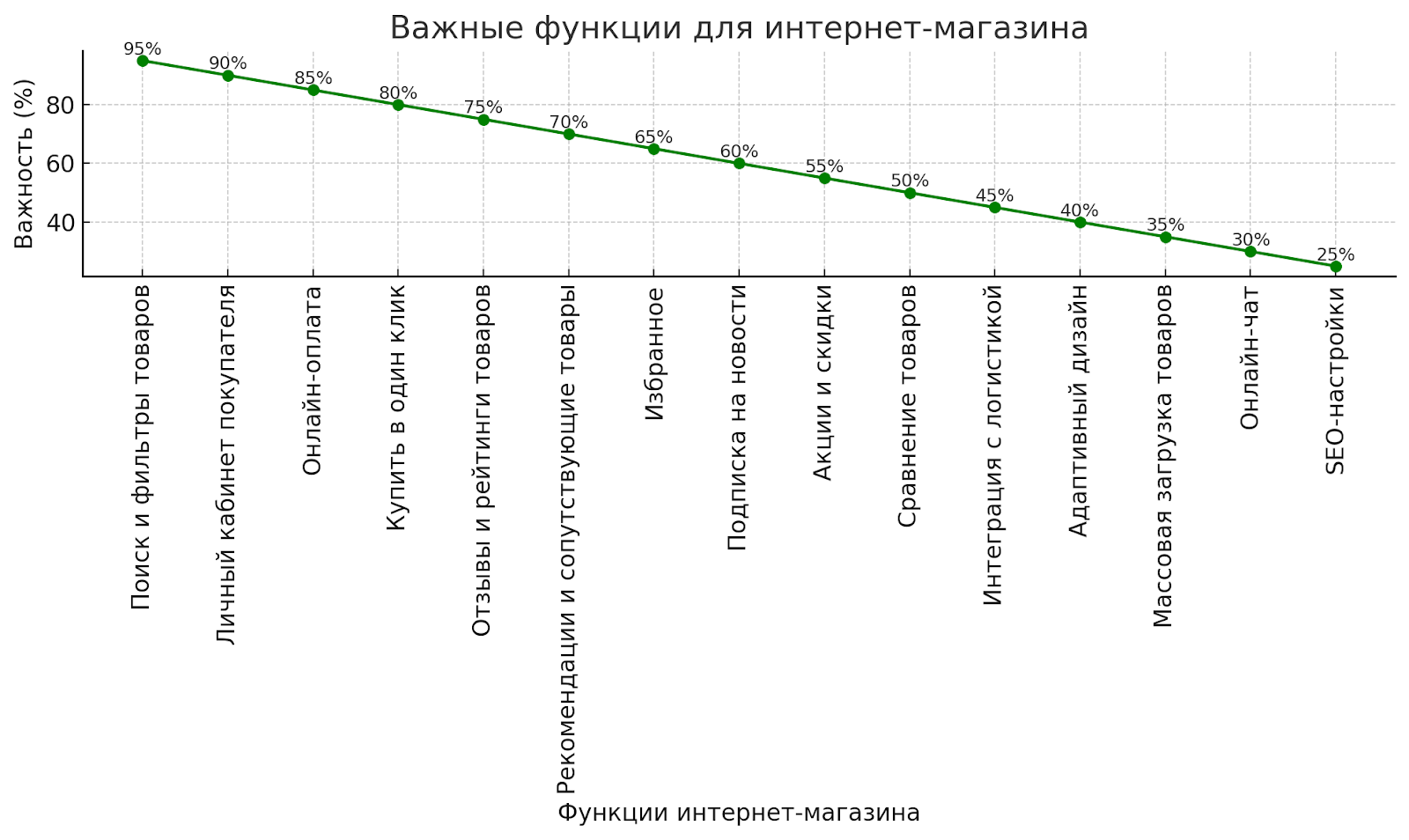 • Почему важно: интернет-магазин должен быстро загружаться и быть удобным для мобильных потребителей, так как покупки через смартфон становятся все популярнее.